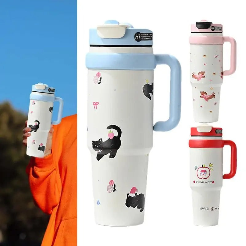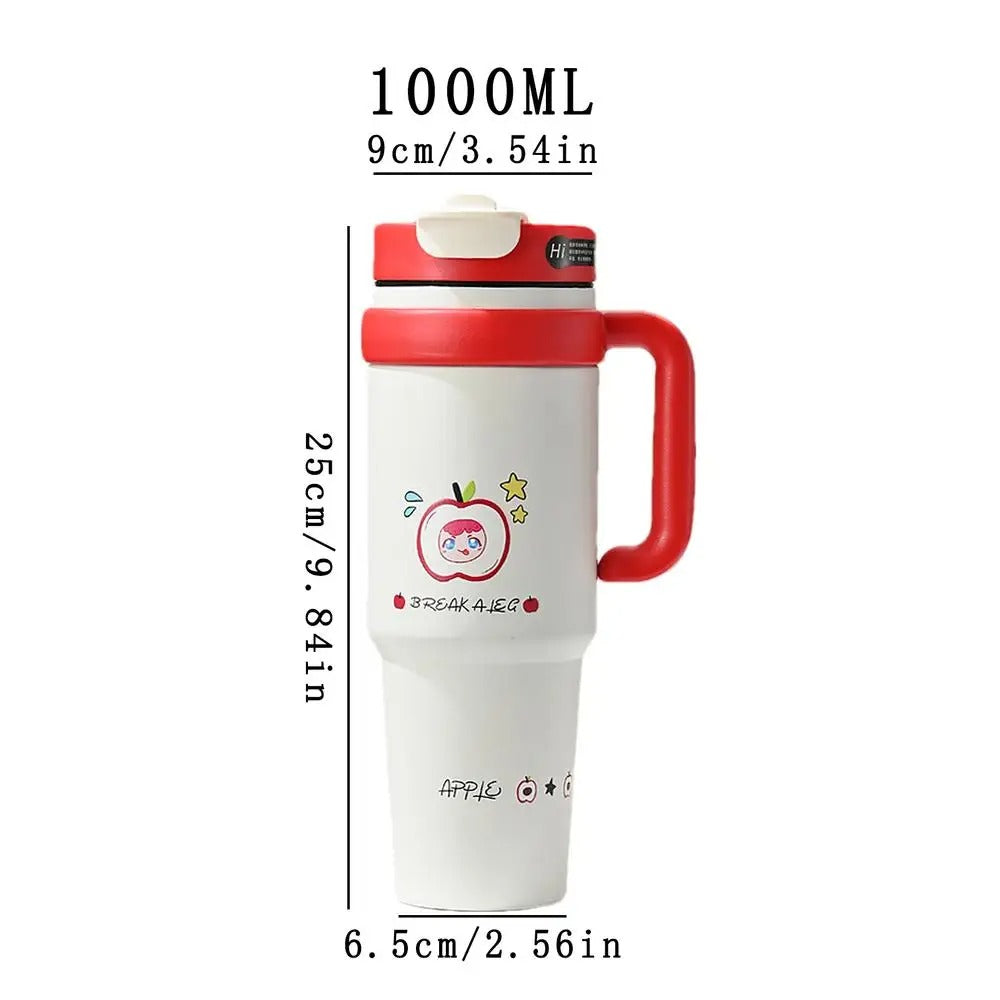 This modern insulated tumbler with a handle is designed to keep your drinks hot or cold for hours. Its leakproof design and 1000ml capacity make it perfect for on-the-go use, fitting easily in most cupholders. Whether you're enjoying iced coffee or a warm beverage, this reusable tumbler offers convenience and durability, making it an ideal companion for busy moms and anyone who values practicality and style.